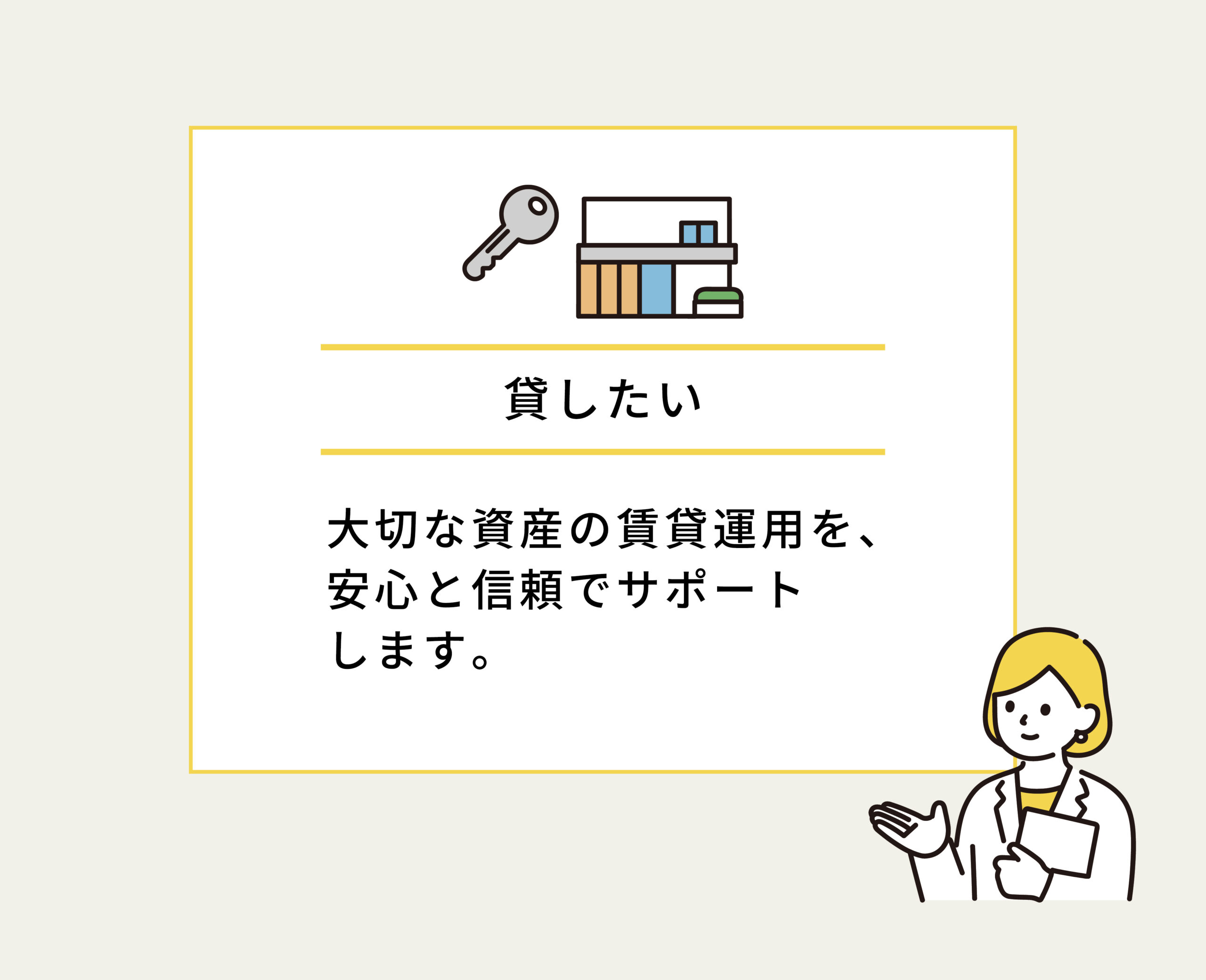 A.貸主様ご自身で管理される方もいらっしゃいますが、実際には借主様との間で賃料滞納などのトラブルが起こることもあります。そうしたトラブルの解決や、今後のトラブル防止のために、管理業務をプロに依頼される貸主様も少なくありません。また、ご入居期間中の修繕やクレームに関しましては、貸主様が直接対応すると、内容によってはお互い感情的になる場合もあります。借主様側も、修繕やクレームを貸主様に言えず、不満を胸に秘めつつ待機されるという、悲しいケースもございます。このようなときに、第三者の立場でお話を聞ける管理会社がとても重要です。修繕については受付・業者の手配がスムーズに済み、クレームも第三者が入れることにより感情的になることを避けることができるというメリットがあります。